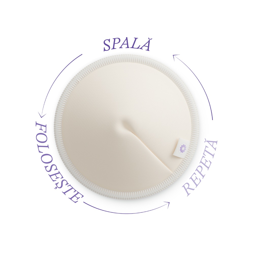 - pachetul include 4 tampoane pentru san reutilizabile, albe si un saculet de spalare pentru o curatare si uscare usoara.