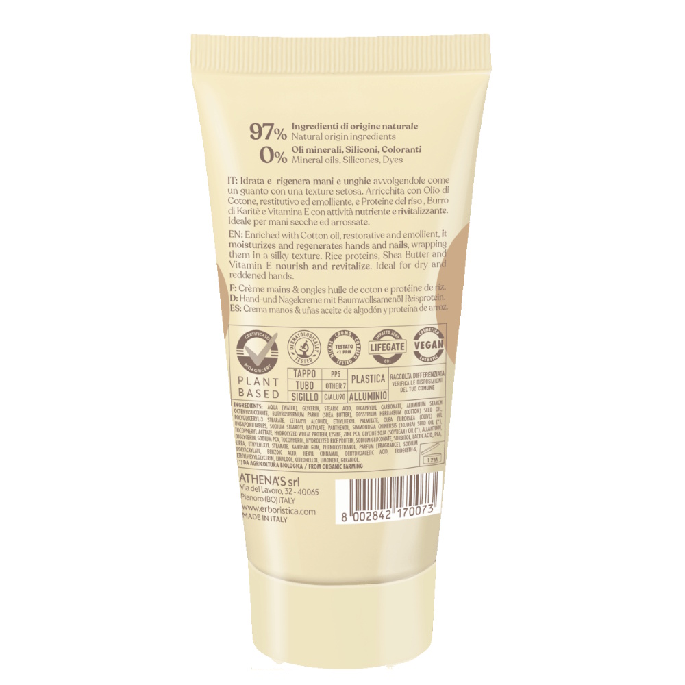 Ingrediente:Aqua [Water], Glycerin, Stearic acid, Dicaprylyl carbonate, Aluminum starch octenylsuccinate, Butyrospermum parkii (Shea butter), Gossypium herbaceum (Cotton) seed oil, Polyglyceryl-3 stearate, Cetearyl alcohol, Ethylhexyl palmitate, Olea europaea (Olive) oil unsaponifiables, Sodium stearoyl lactylate, Panthenol, Simmondsia chinensis (Jojoba) seed oil (*), Tocopheryl acetate, Hydrolyzed wheat protein, Lysine, Zinc PCA, Glycine soja (Soybean) oil (*), Beta-sitosterol, Squalene, Allantoin, Diglycerin, Sodium PCA, Tocopherol, Hydrolyzed rice protein, Sodium gluconate, Sorbitol, Lactic acid, PCA, Urea, Ethylhexyl stearate, Xanthan gum, Phenoxyethanol, Parfum [Fragrance], Sodium polyacrylate, Benzoic acid, Hexyl cinnamal, Dehydroacetic acid, Trideceth-6, Ethylhexylglycerin, Linalool, Citronellol, Limonene, Geraniol.
