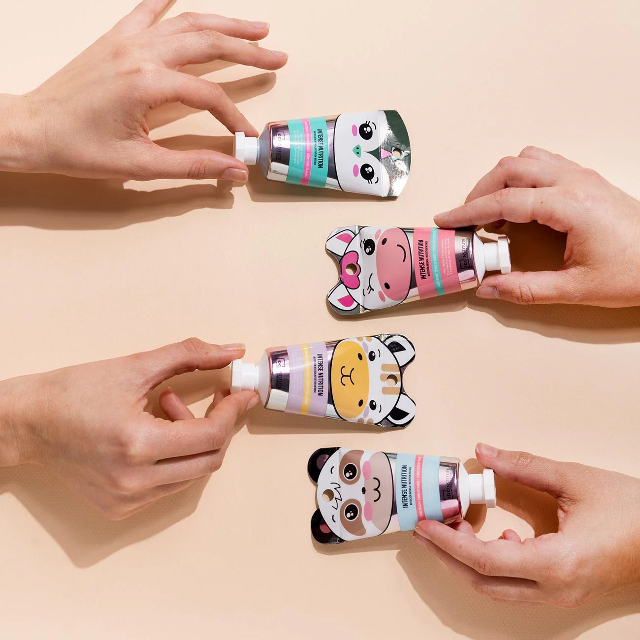 Ingrediente:Hand Cream Blackberry&peach: Aqua (Water). Cetearyl Alcohol. Paraffinum Liquidum (Mineral Oil). Glyceryl Stearate. Peg-100 Stearate. Stearic Acid. Polyquaternium-22. C13-16 Isoparaffin. Laureth-25. Phenoxyethanol. Parfum (Fragrance). Carbomer. Chlorphenesin. Benzyl Salicylate. Linalool./ Hand Cream Coconut: Aqua (Water). Cetearyl Alcohol. Paraffinum Liquidum (Mineral Oil). Glyceryl Stearate. Peg-100 Stearate. Stearic Acid. Polyquaternium-22. C13-16 Isoparaffin. Laureth-25. Phenoxyethanol. Parfum (Fragrance). Carbomer. Chlorphenesin. Cocos Nucifera (Coconut) Oil. Coumarin./ Hand Cream Cherry&vanilla: Aqua (Water). Cetearyl Alcohol. Paraffinum Liquidum (Mineral Oil). Glyceryl Stearate. Peg-100 Stearate. Stearic Acid. Polyquaternium-22. C13-16 Isoparaffin. Laureth-25. Phenoxyethanol. Parfum (Fragrance). Carbomer. Chlorphenesin. Linalool. Hexyl Cinnamal. Limonene. Alpha-isomethyl Ionone./ Hand Cream Vanilla&caramel: Aqua (Water). Cetearyl Alcohol. Paraffinum Liquidum (Mineral Oil). Glyceryl Stearate. Peg-100 Stearate. Stearic Acid. Polyquaternium-22. C13-16 Isoparaffin. Laureth-25. Phenoxyethanol. Parfum (Fragrance). Carbomer. Chlorphenesin. Benzyl Alcohol. Coumarin.