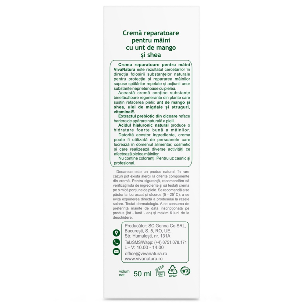 Aqua (apă), Elaeis guineensis kernel oil (ulei palmier), Mangifera Indica Seed Butter (unt mango), Butyrospermum parkii (unt de shea), Glyceryl Behenate (origine naturală), Alcohol (origine naturală), Glycerin (origine vegetală), Inulin (extract cicoare), Lauryl Carbamate (origine naturală), Squalane (ulei sqalan), Sodium Polyacrylate, Hydrogenated Polydecene, Trideceth-6, Phenoxyethanol, Prunus Amygdalus Dulcis Oil (ulei migdale), Vitis Vinifera Seed Oil (ulei struguri), Tocopherol (vitamina E), Allantoin, Glyceryl Laurate (origine naturală), Fructose (origine naturală), Parfum, Sodium hyaluronate (origine naturală), Aloe vera callus extract (aloe), Calendula officinalis extract (gălbenele), Lythrum salicaria root extract (răchitan), Achillea millefolium extract (coada șoricelului), Symphytum officinale extract (tătăneasă), Althaea officinalis leaf extract (nalbă mare).