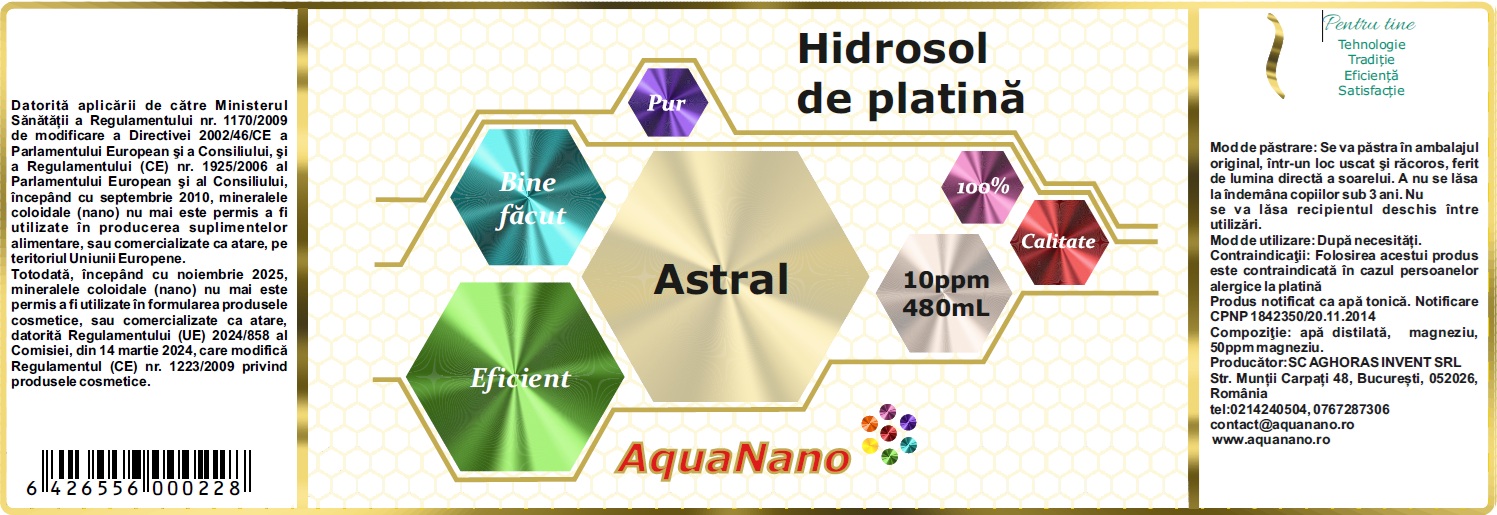 - hidrosolul de platina este o suspensie coloidala obtinuta prin metode controlate de productie, menite sa asigure stabilitatea particulelor dispersate in apa;