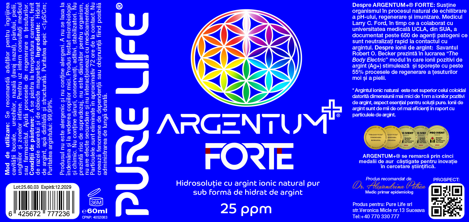 Hidrosolutie cu argint ionic Argentum+ Forte, 60 ml, Pure Life [6425672777236]