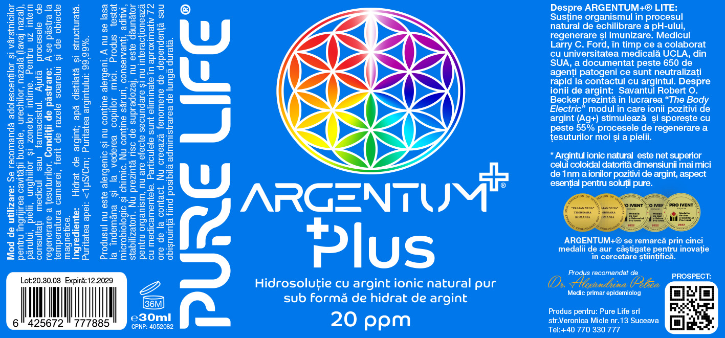 Hidrosolutie cu argint ionic Argentum+ Plus, 30 ml, Pure Life [6425672777885]