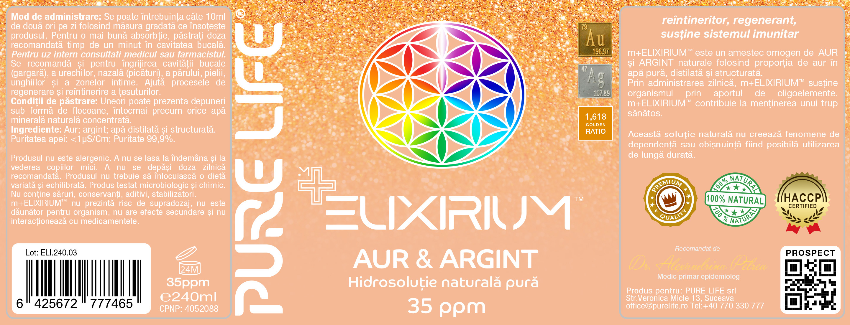 Hidrosolutie cu aur si argint Minerals+ Mix Elixirium, 240 ml, Pure Life [6425672777465]