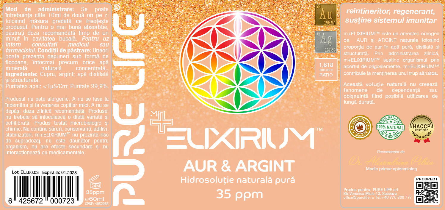 Hidrosolutie cu aur si argint Minerals+ Mix Elixirium, 60 ml, Pure Life