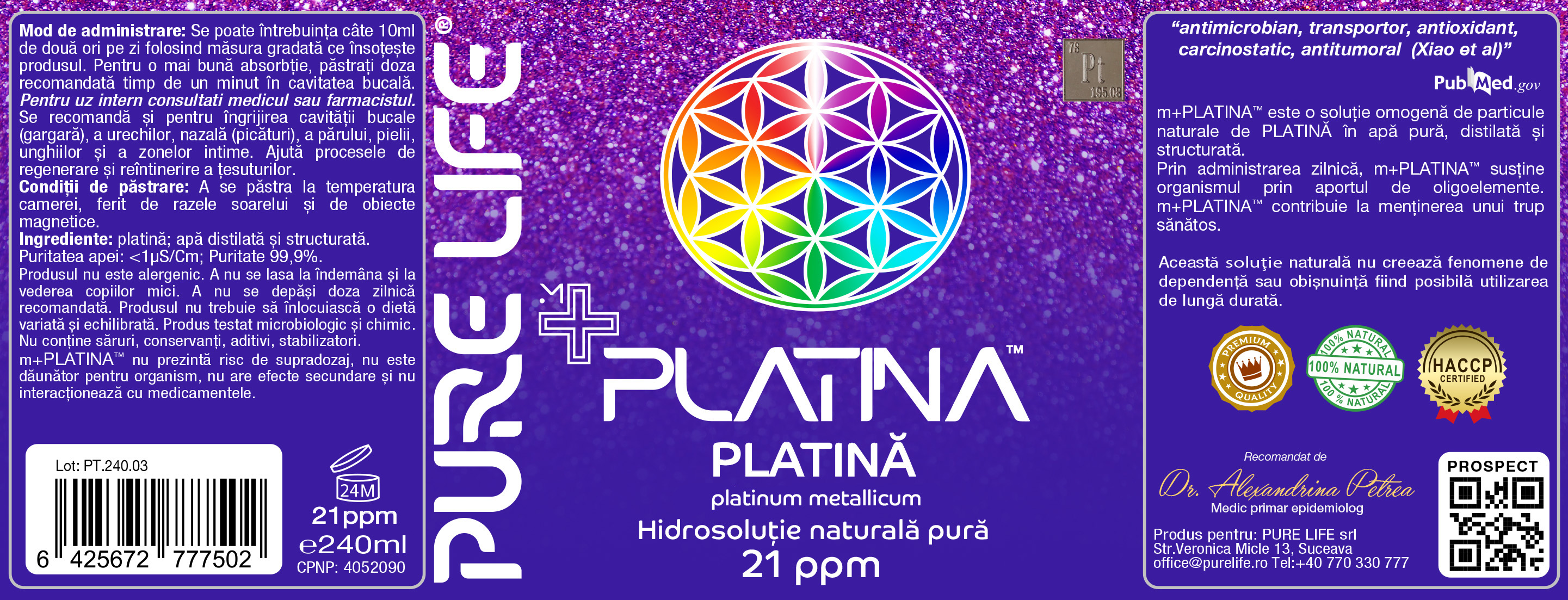 Informatii utile despre Hidrosolutie cu platina Minerals+ Platina, 240 ml, Pure Life gasiti in articolele: Top 6 cele mai intalnite afectiuni orale. Hidrosolutie cu platina Minerals+ Platina 240 ml Pure Life (35 ppm, hidrosolutie naturala) , contine ingrediente active:platina coloidala, .