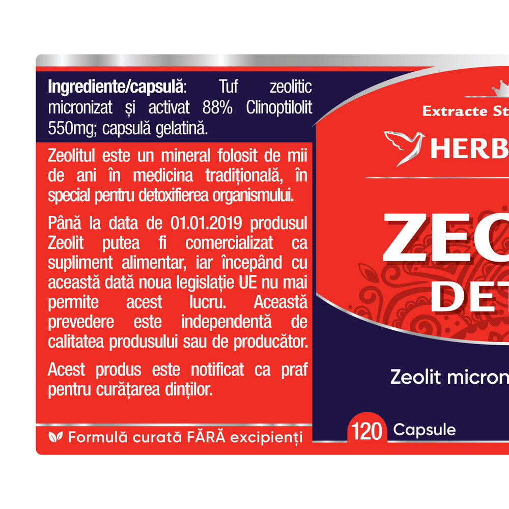 Tuf Zeolitic micronizat si activat standardizat cu 88% Clinoptilolit - 550 mg.