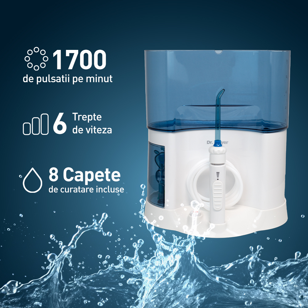 - dusul bucal Countertop Water Flosser WT5000 curata in locurile inaccesibile dintre dinti si in profunzimea buzunarelor gingivale, indepartand resturile si tartrul ce contribuie la aparitia cariilor, imbolnavirea gingiilor si a respiratiei urat mirositoare;