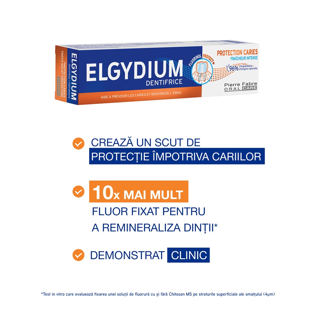 - formula se bazeaza pe complexul fluorinol protect+ cu actiune de protectie a smaltului dentar;