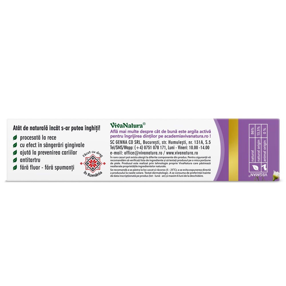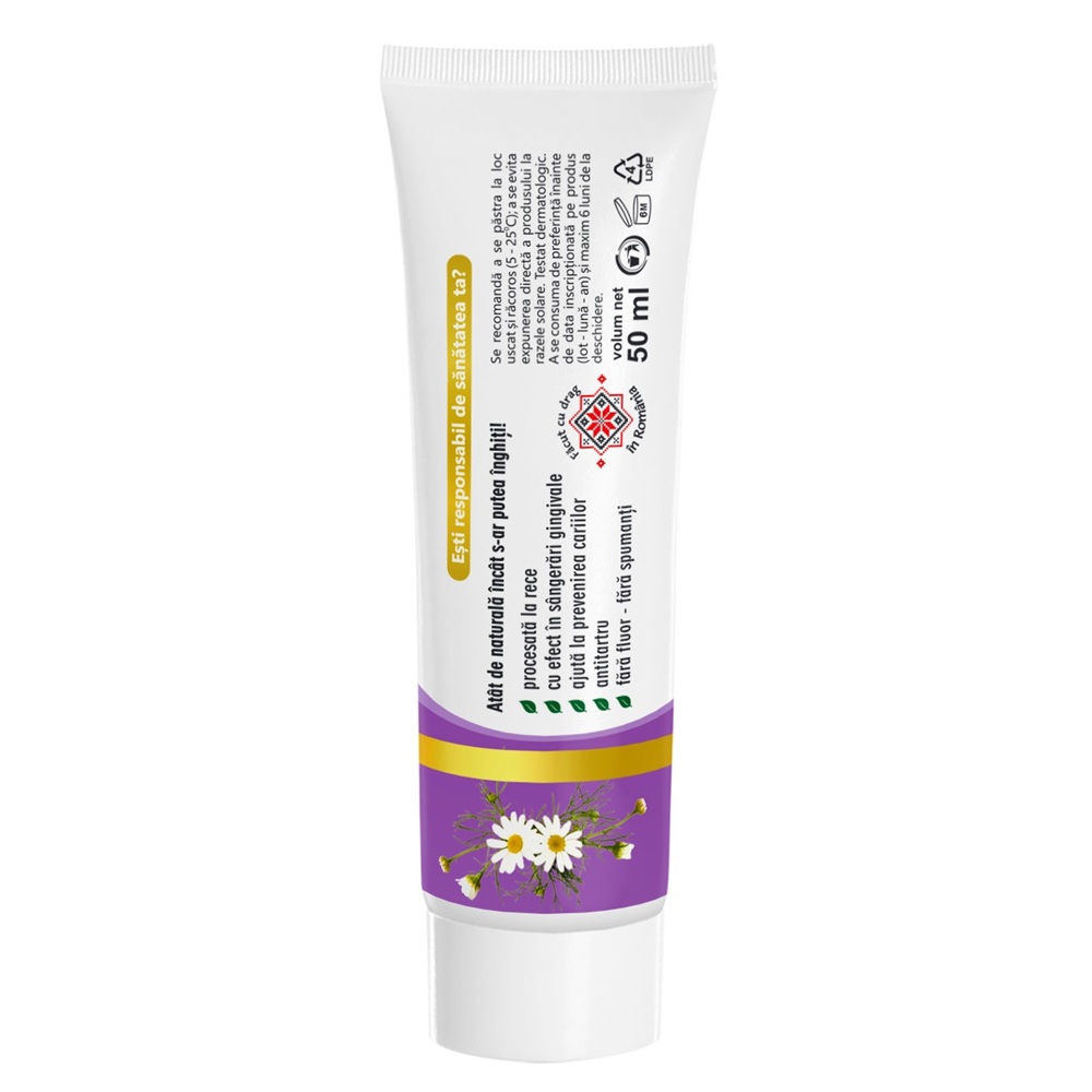 - este o pasta de dinti 99,7% naturala, ideala pentru ingrijirea dintilor, ce poate fi utilizata cu succes in timpul tratamentelor homeopatice, cand majoritatea pastelor de dinti sunt interzise;