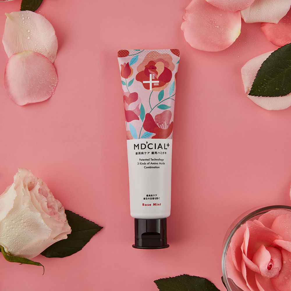 Sorbitol solution, concentrated glycerin [Solvent] Purified water, ethanol [Cleaning agent] Calcium carbonate, sodium bicarbonate [Thickener] Anhydrous silicic acid [Active ingredient] Sodium monofluorophosphate (fluorine), zeolite, ß-glycyrrhetinic acid, cetylpyridinium chloride [Foaming agent] Sodium lauryl sulfate, sodium lauroyl methyl taurate [Binding agent] Sodium carboxymethylcellulose [Flavoring agent] Fragrance (rose mint type) [Refreshing agent] 1-menthol [Sweetener] Sodium saccharin, xylitol [Flavoring agent] Scutellaria root extract, L-aspartic acid, L-arginine, L-serine [Stabilizer] DL-tocopherol acetate [Coloring agent] Gunjo, Yellow No. 203.