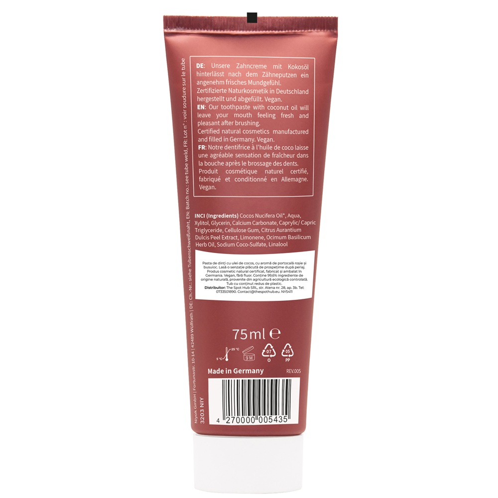 Pasta de dinti cu ulei de cocos, portocala rosie si busuioc, 75 ml, Niyok [4270000005435]