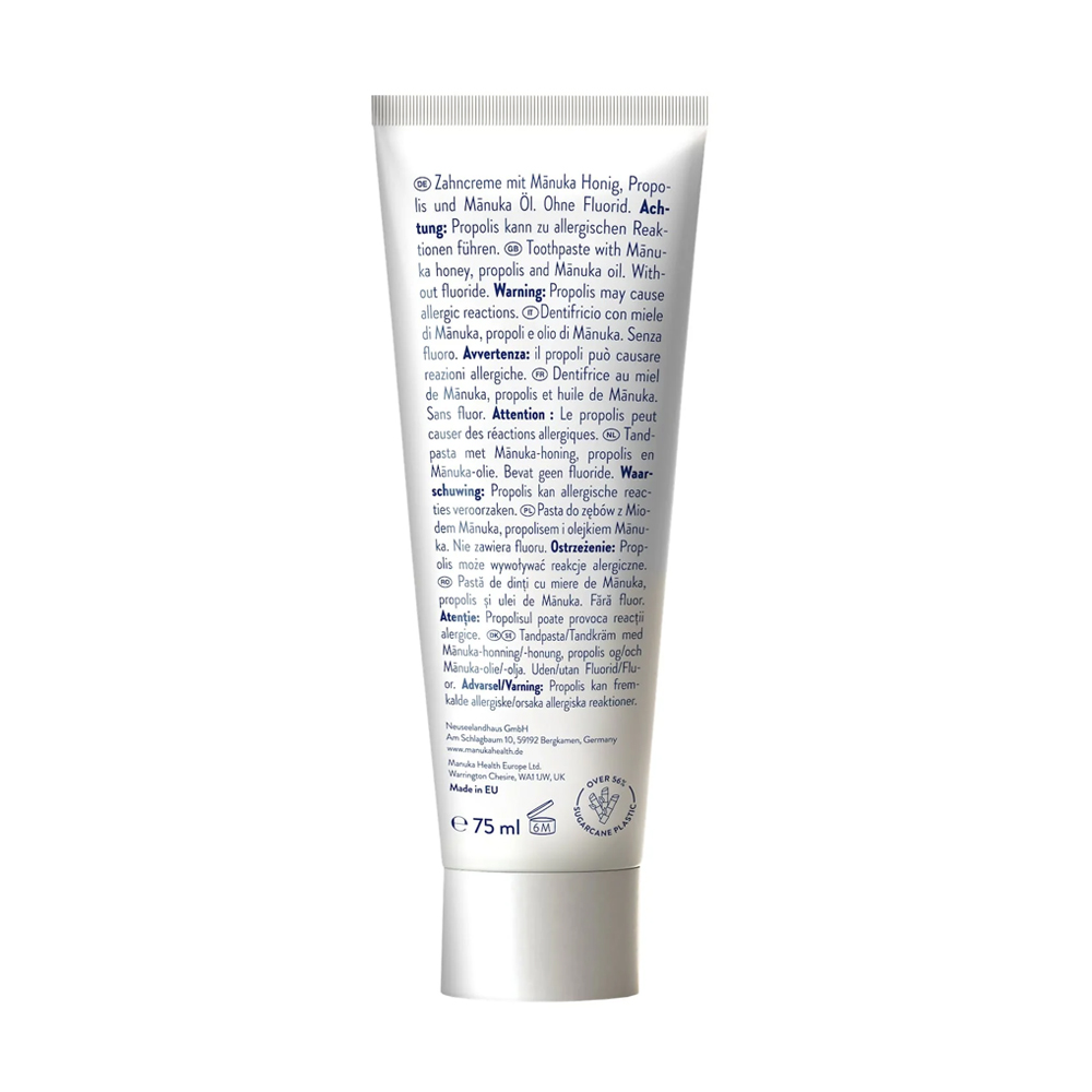 - mierea de Manuka și propolisul pot acționa blând asupra dinților și gingiilor, pot asigura o protecție antibacteriană și o îngrijire orală complete;