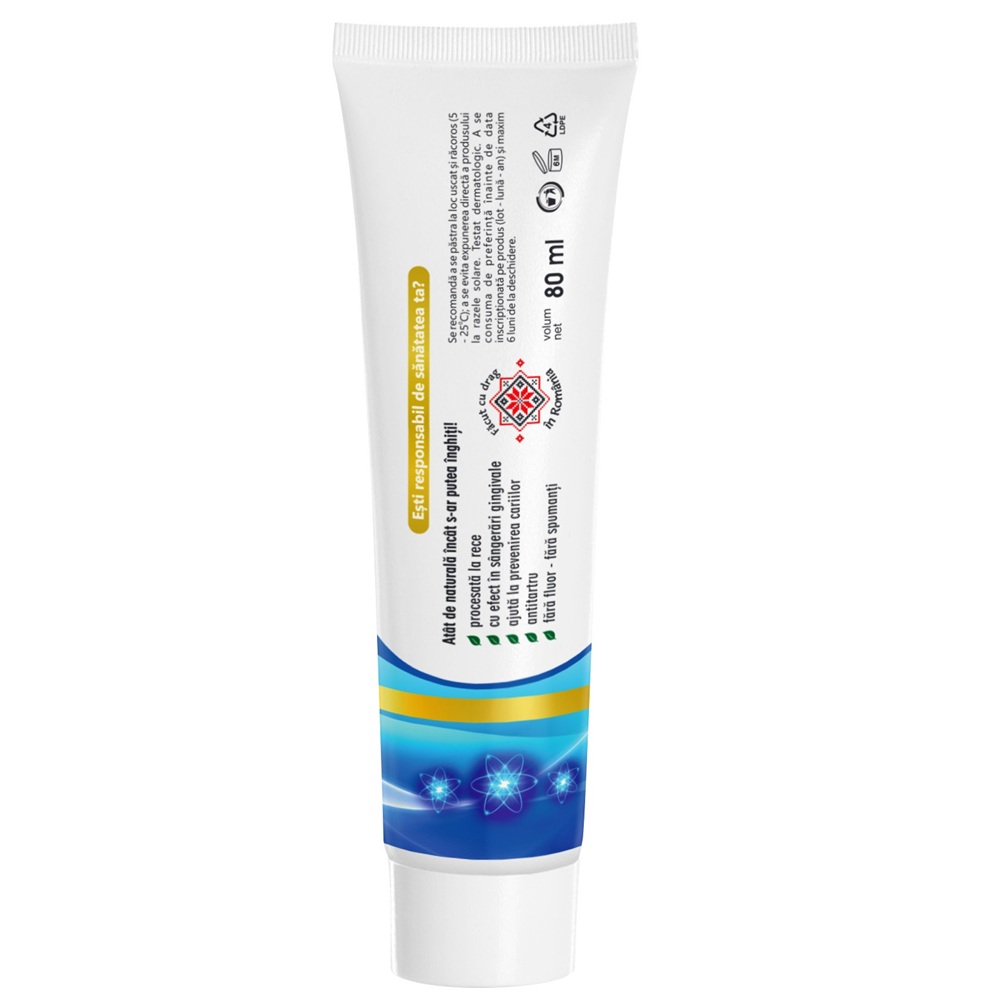 Pentru eficienta sporita se recomanda ca, dupa periaj, sa se mentina in cavitatea bucala aproximativ 1-3 minute, dupa care se clateste.