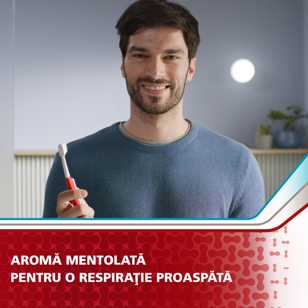 - poate proteja impotriva problemelor gingivale, a respiratiei neplacute si a sensibilitatii dentare, prin periaj de doua ori pe zi si utilizare continua;