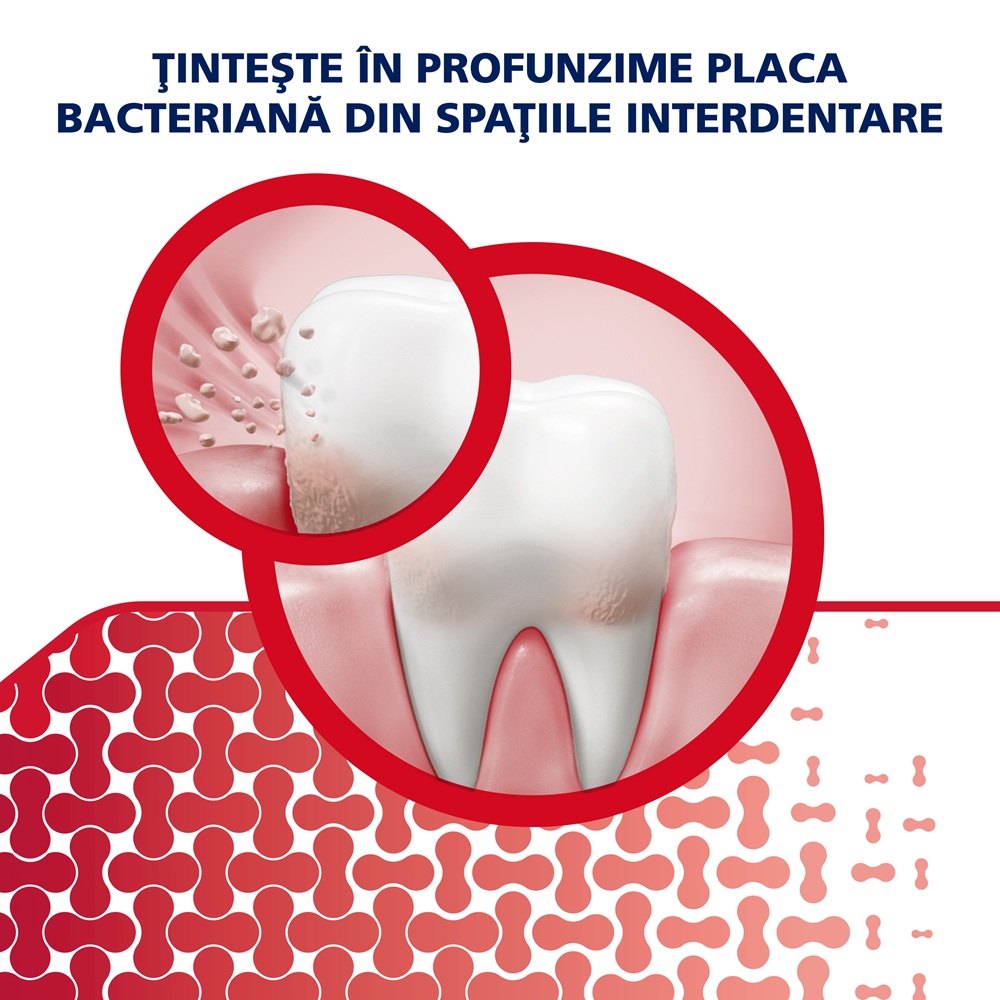 - tinteşte in profunzime placa bacteriana din spaţiile interdentare;