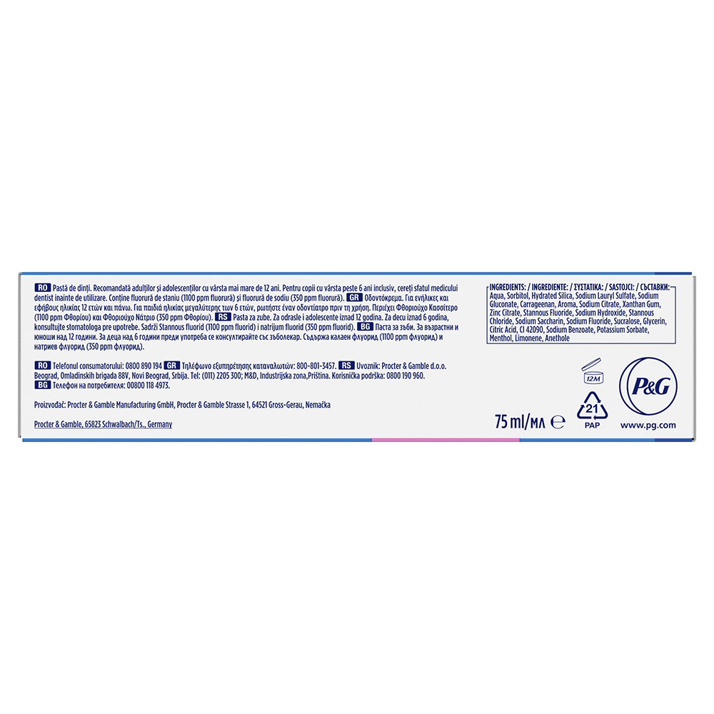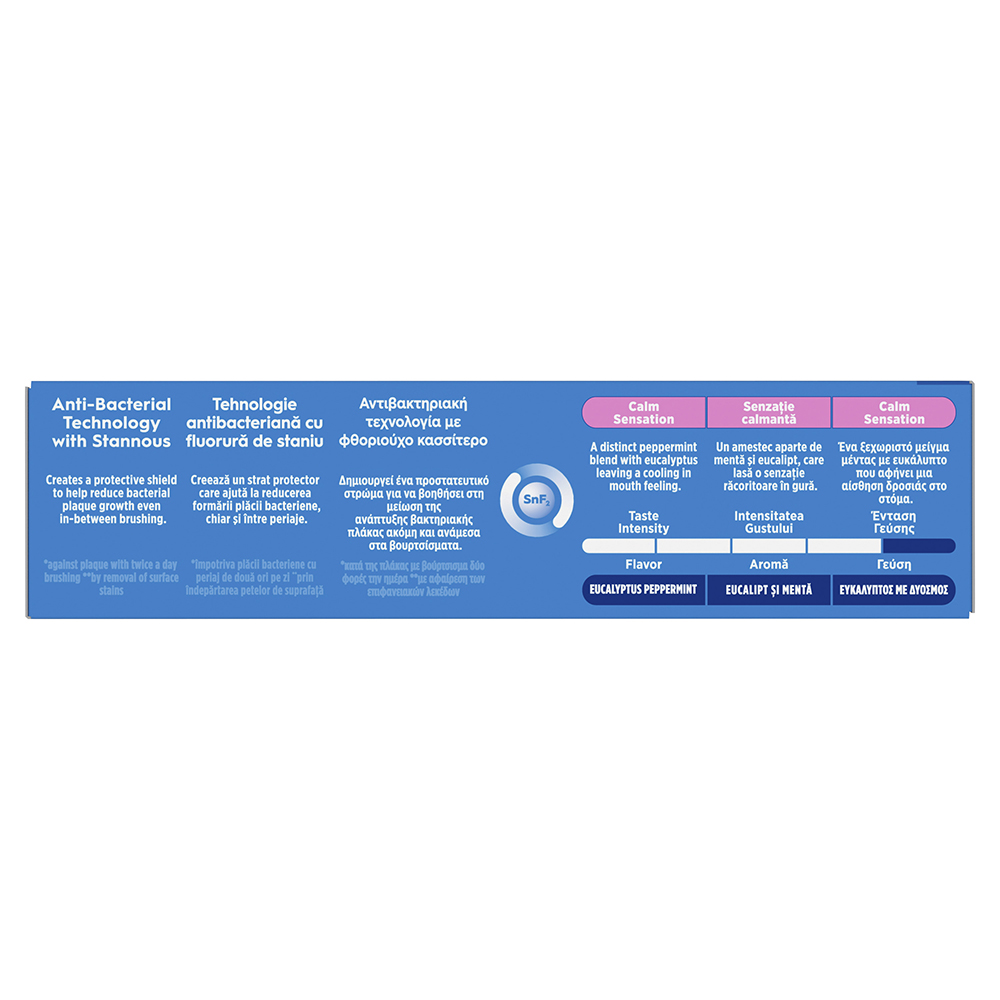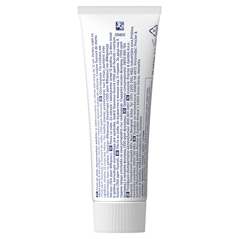 - protejează împotriva sensibilității și oferă protecție împotriva plăcii bacteriene timp de 24 de ore prin periaj de două ori pe zi;