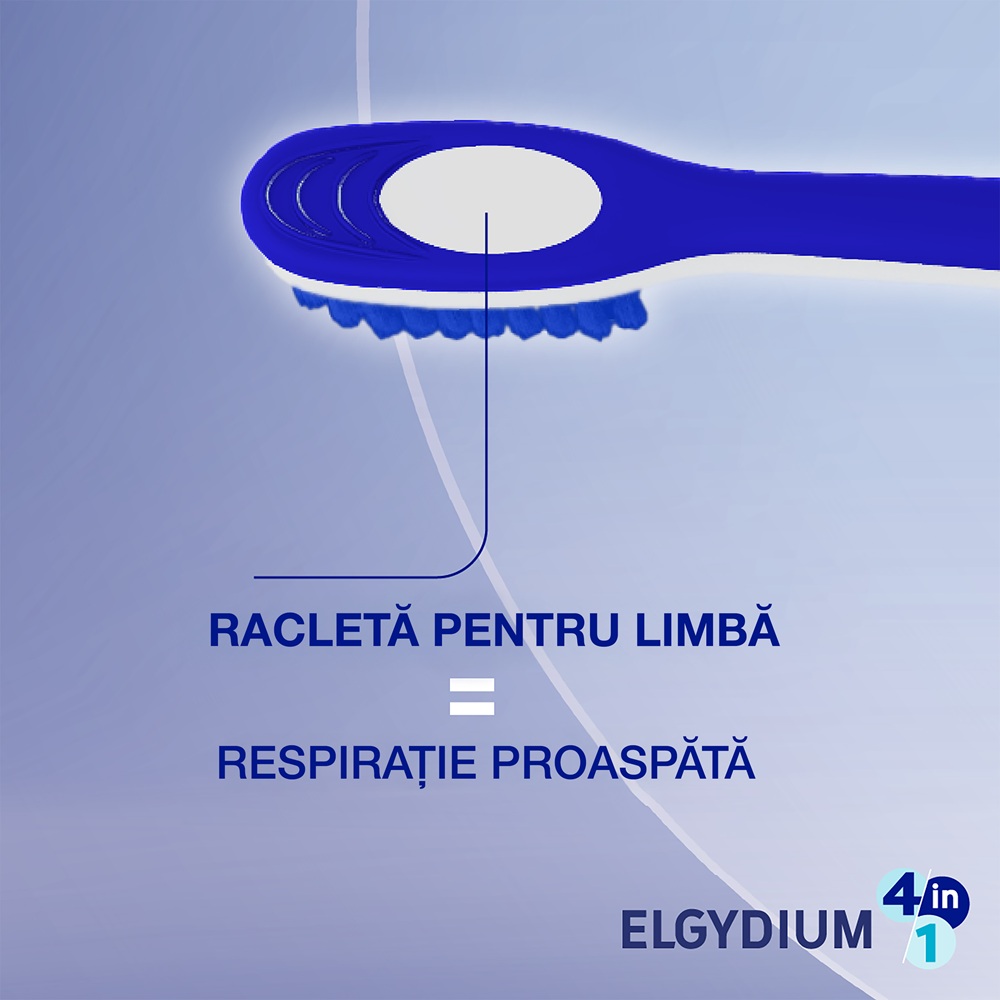 - racleta de limba integrata combate bacteriile responsabile de respiratia urat mirositoare;