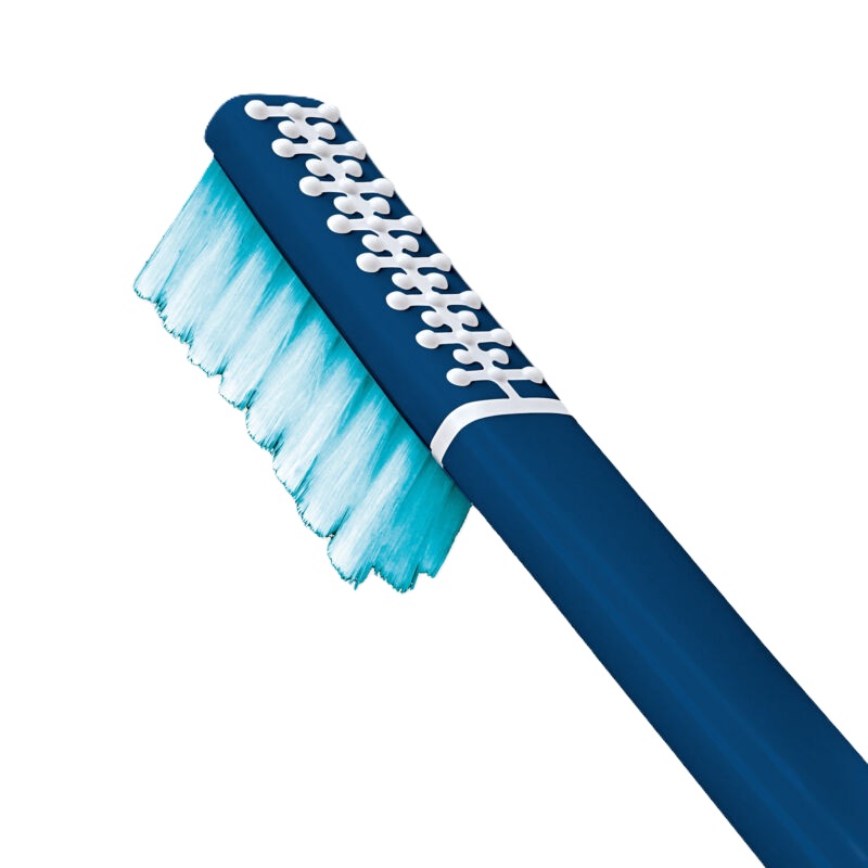 - Peri delicați: micro-perii din Tynex® sunt construiți într-o formă V, pentru a evita iritarea gingiilor, posibila sângerare a acestora și pentru a asigura o curățare maximă.