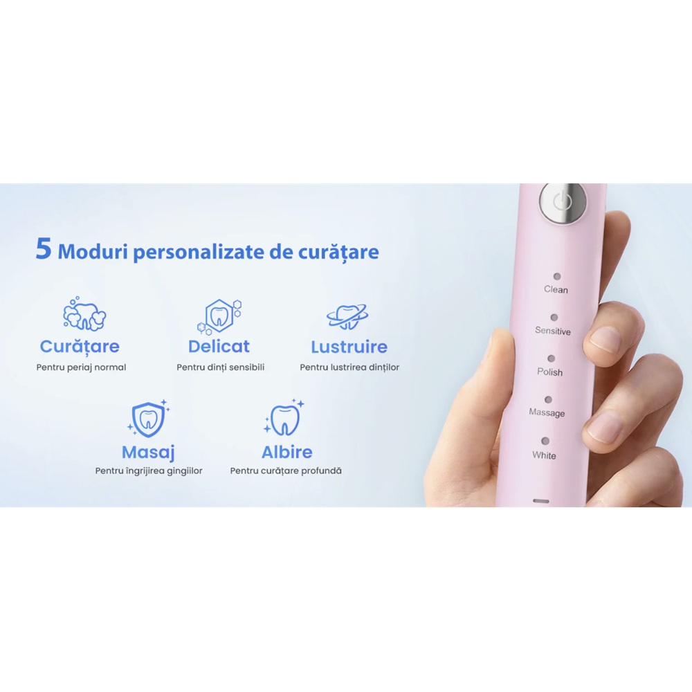 - ofera o curatare profunda, eliminand eficient placa bacteriana si imbunatatind sanatatea gingiilor;