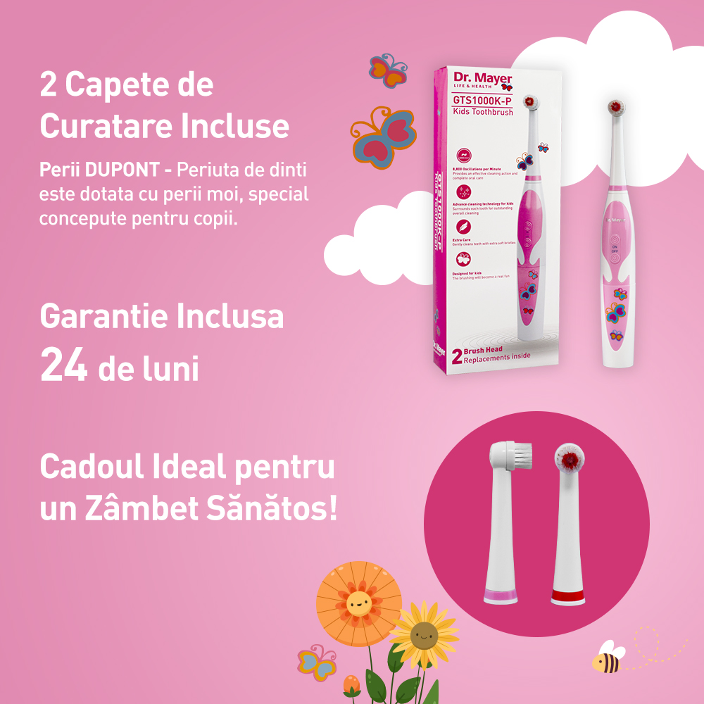 Periuta electrica pentru copii, GTS1000K Pink Dr Mayer- 1 bucata