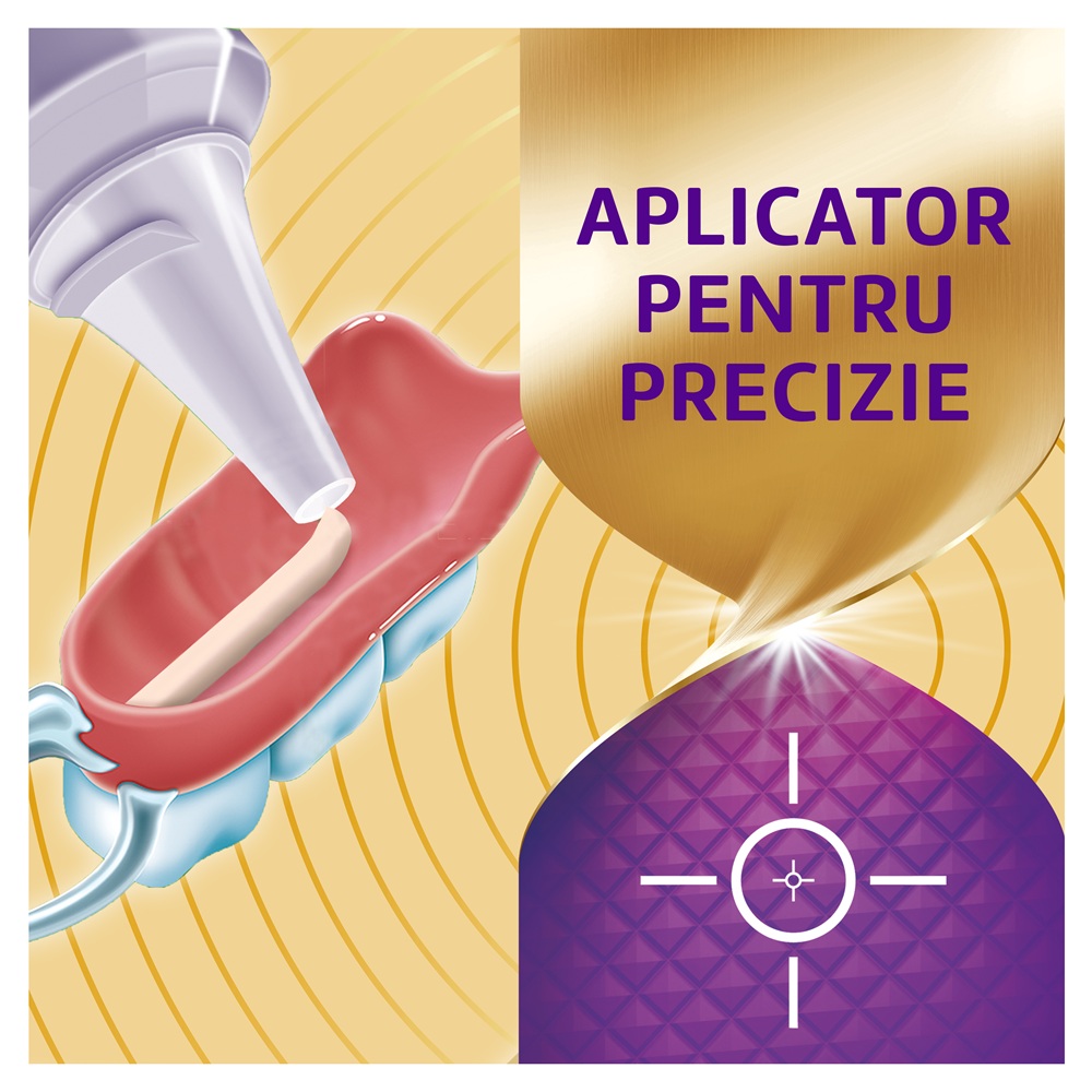 Corega Max Sigilare are un aplicator nou, special conceput pentru aplicarea unei cantitati precise de crema adeziva pe proteza dentara.