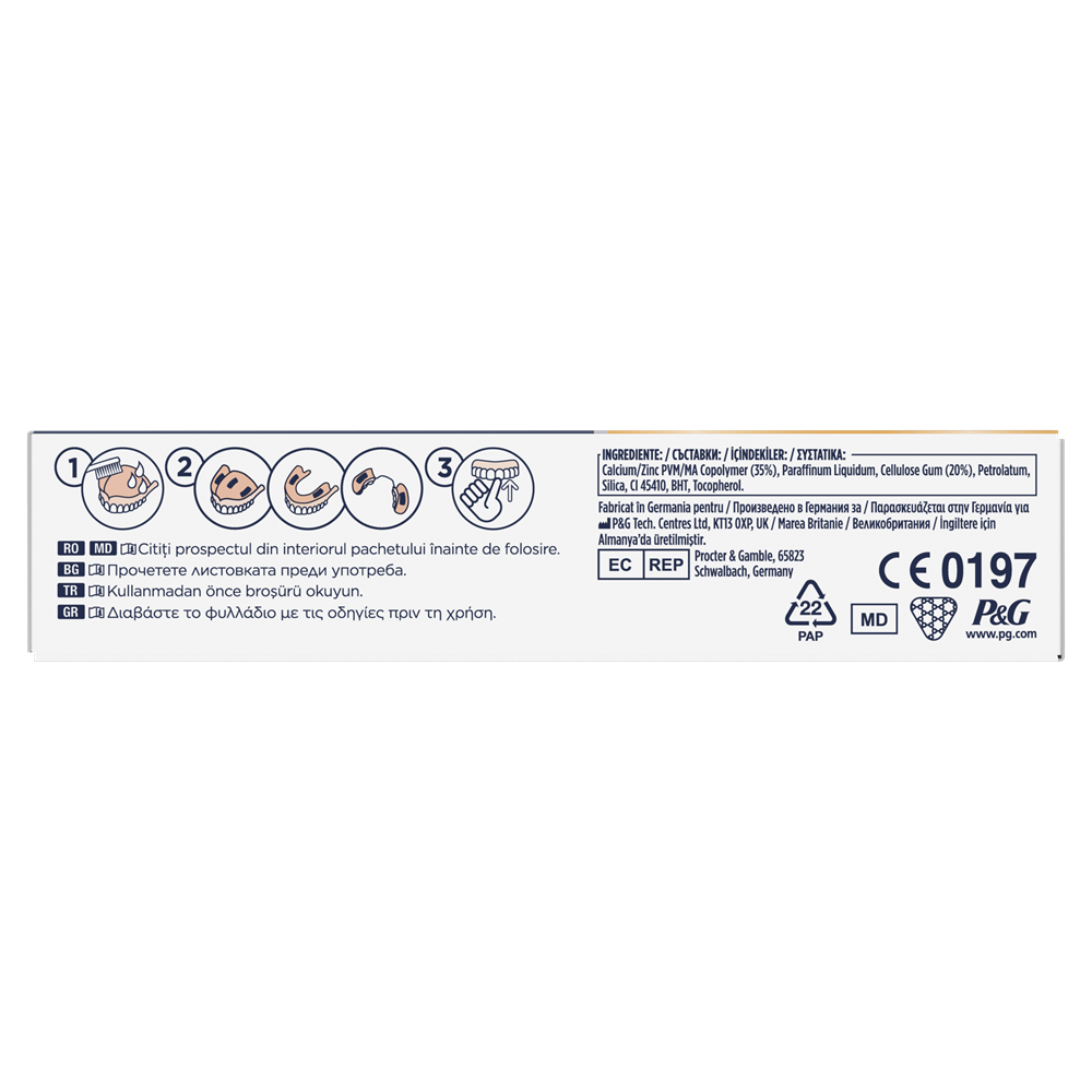 - crema adeziva premium pentru proteze dentare complete si partiale;