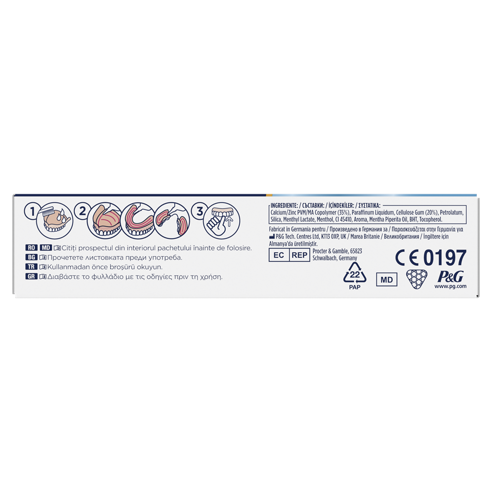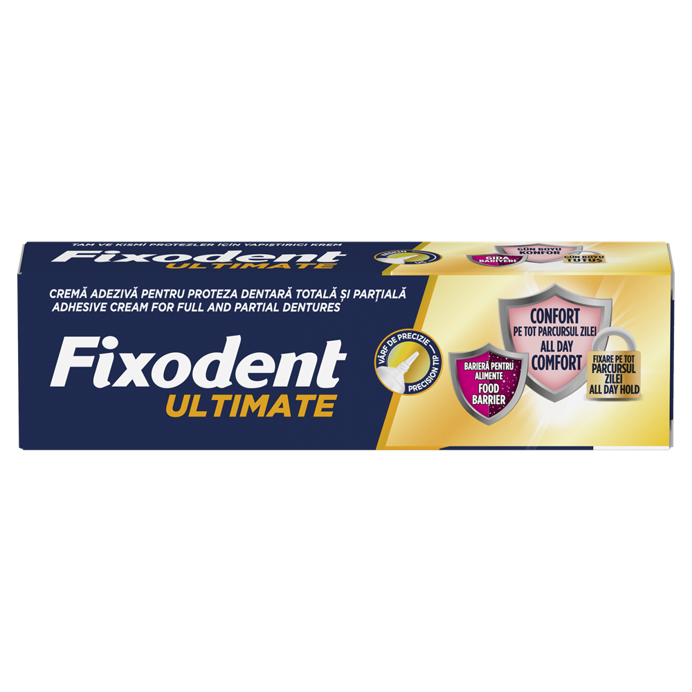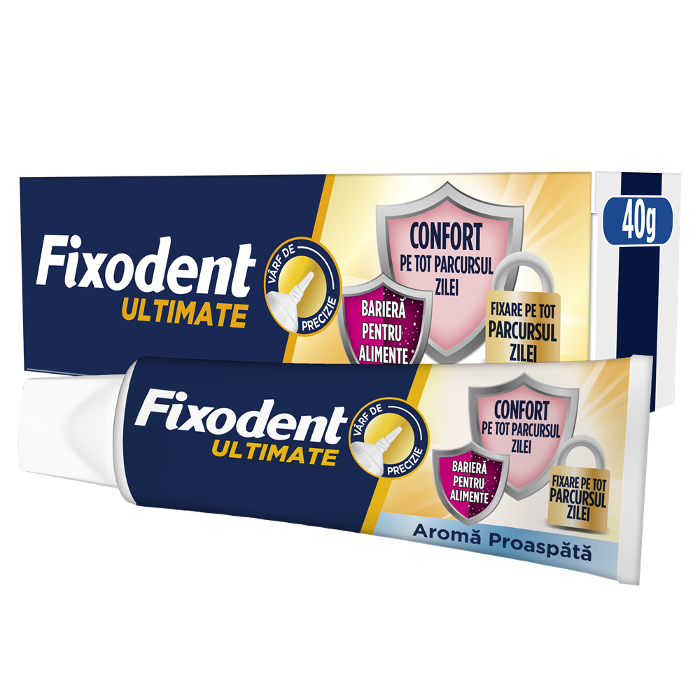 - ajuta la prevenirea patrunderii particulelor de alimente sub proteza dentara si ofera o fixare puternica intreaga zi, pentru confort pe tot parcursul zilei;