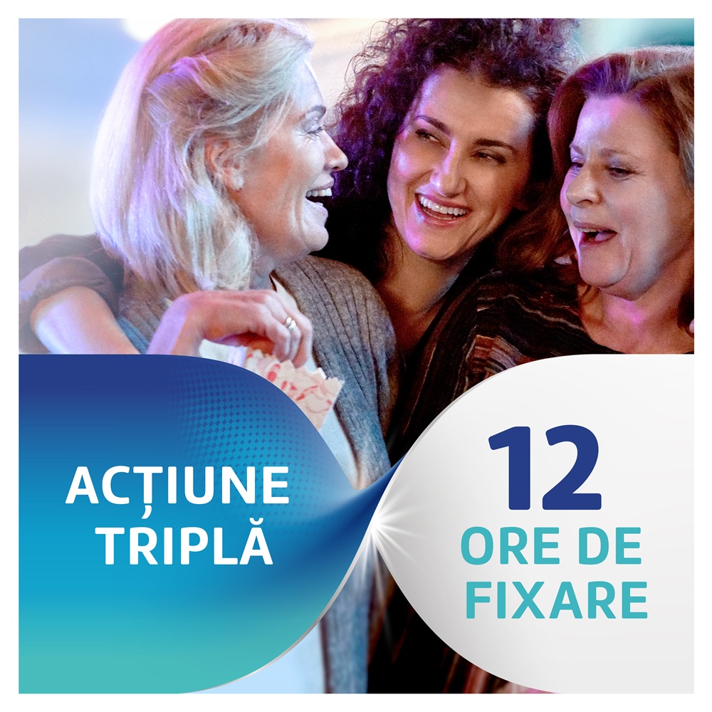 - are o formula creata special pentru a-ti oferi fixare 3D, sigileaza spatiul dintre proteza si gingie si impiedica proteza sa se miste in fata si in spate, in sus si in jos si in lateral, astfel incat sa fii fara griji intreaga zi;
