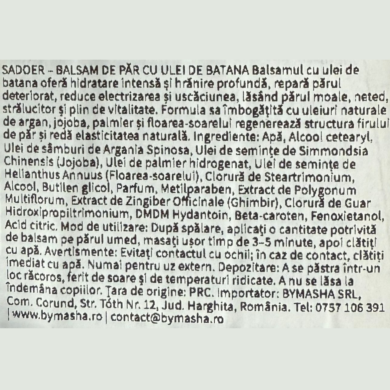 Balsam nutritiv de par cu ulei de batana, 400 ml, Sadoer