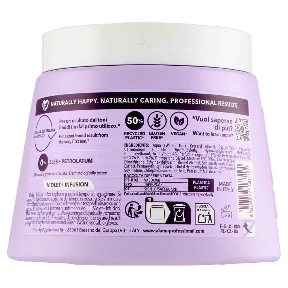 Aqua (Water, Eau), Cetearyl Alcohol, Caprylic/Capric Triglyceride, Cetrimonium Chloride, Dipalmitoylethyl Hydroxyethylmonium Methosulfate, Phenoxyethanol, Acid Violet 43, Parfum (Fragrance), PEG-40 Hydrogenated Castor Oil, PPG-26-Buteth-26, Dipropylene Glycol, Methoxy PEG/PPG-7/3 Aminopropyl Dimethicone, Ethylhexylglycerin, Benzyl Alcohol, Sodium Hydroxide, Wine Extract, Pentaerythrityl Tetra-Di-t-Butyl Hydroxyhydrocinnamate, Hydrolyzed Soy Protein, Chlorphenesin, Sorbic Acid, Potassium Metabisulfite.