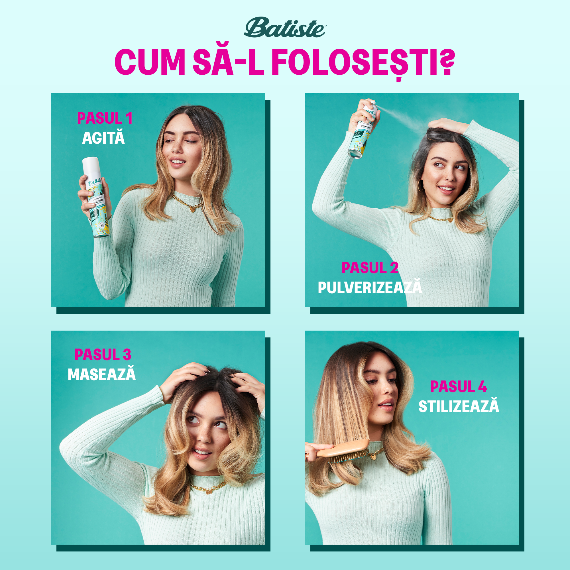 Pulverizeaza samponul uscat la radacina parului de la o distanta de aproximativ 30 cm, asigurandu-te ca acoperi uniform zonele dorite.