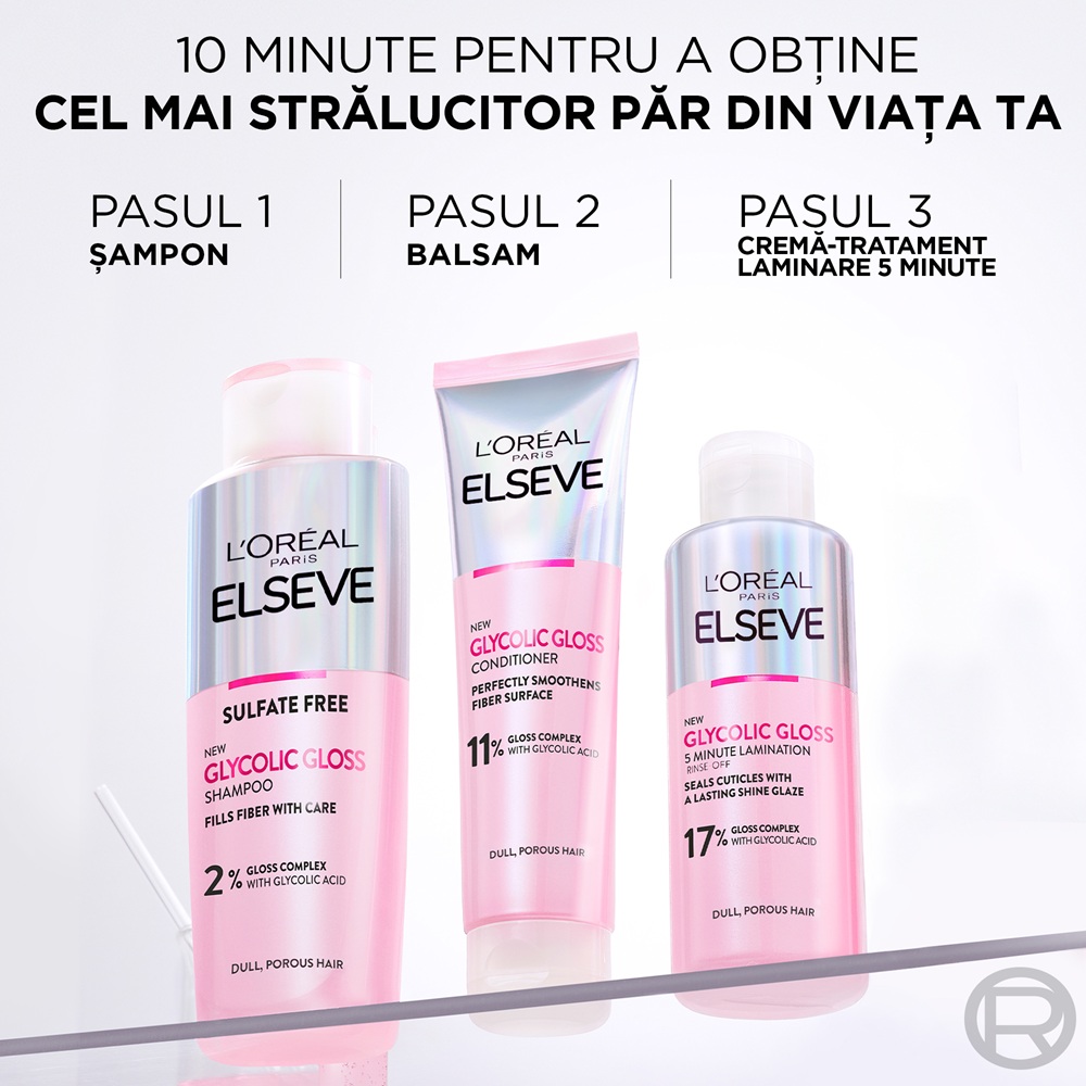 Dupa samponare, aplicati balsamul Glycolic Gloss pe lungimi si varfuri. Lasati sa actioneze timp de 3 minute, dupa care clatiti.