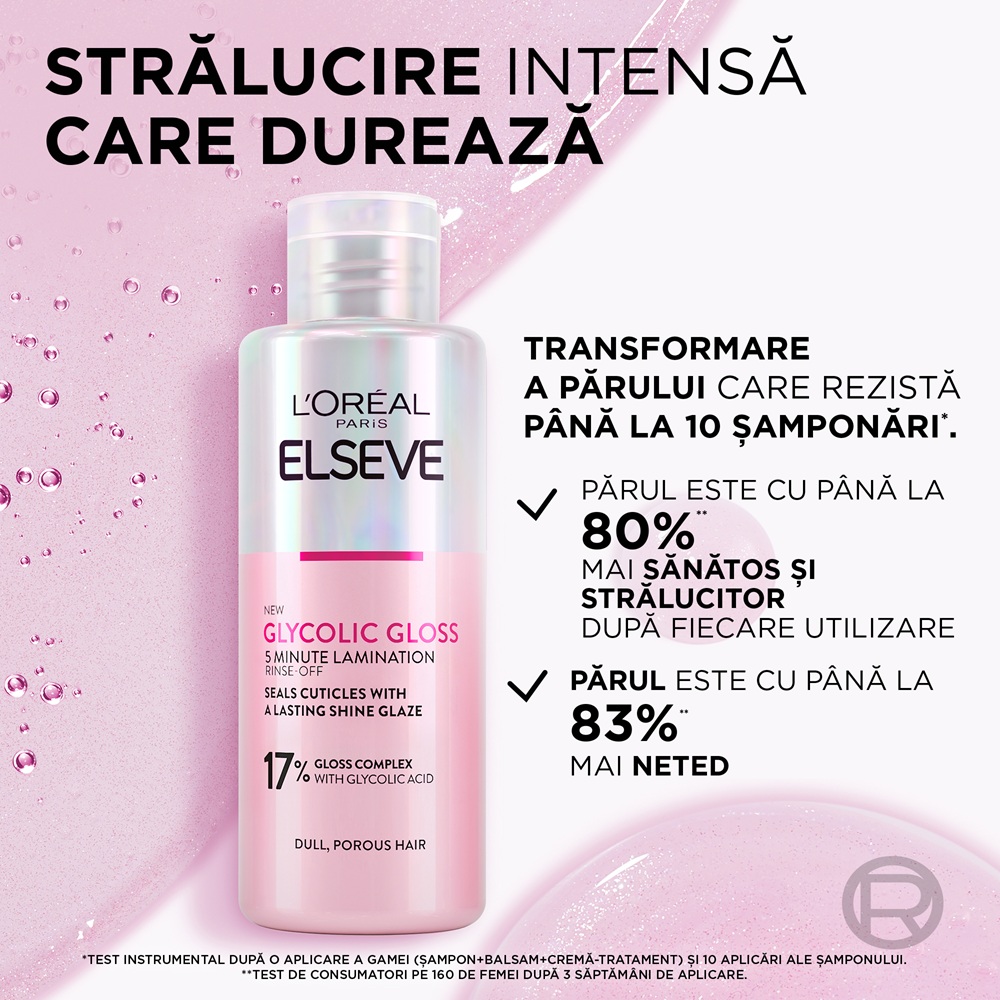 - este imbogatita cu 17% [COMPLEX DE STRALUCIRE] cu Acid Glicolic: fibra este restaurata din interior pentru a imbunatati calitatea parului, oferindu-i o stralucire de durata;