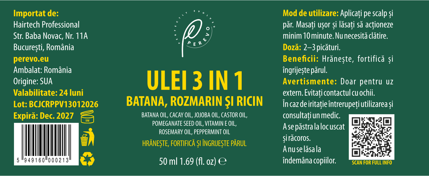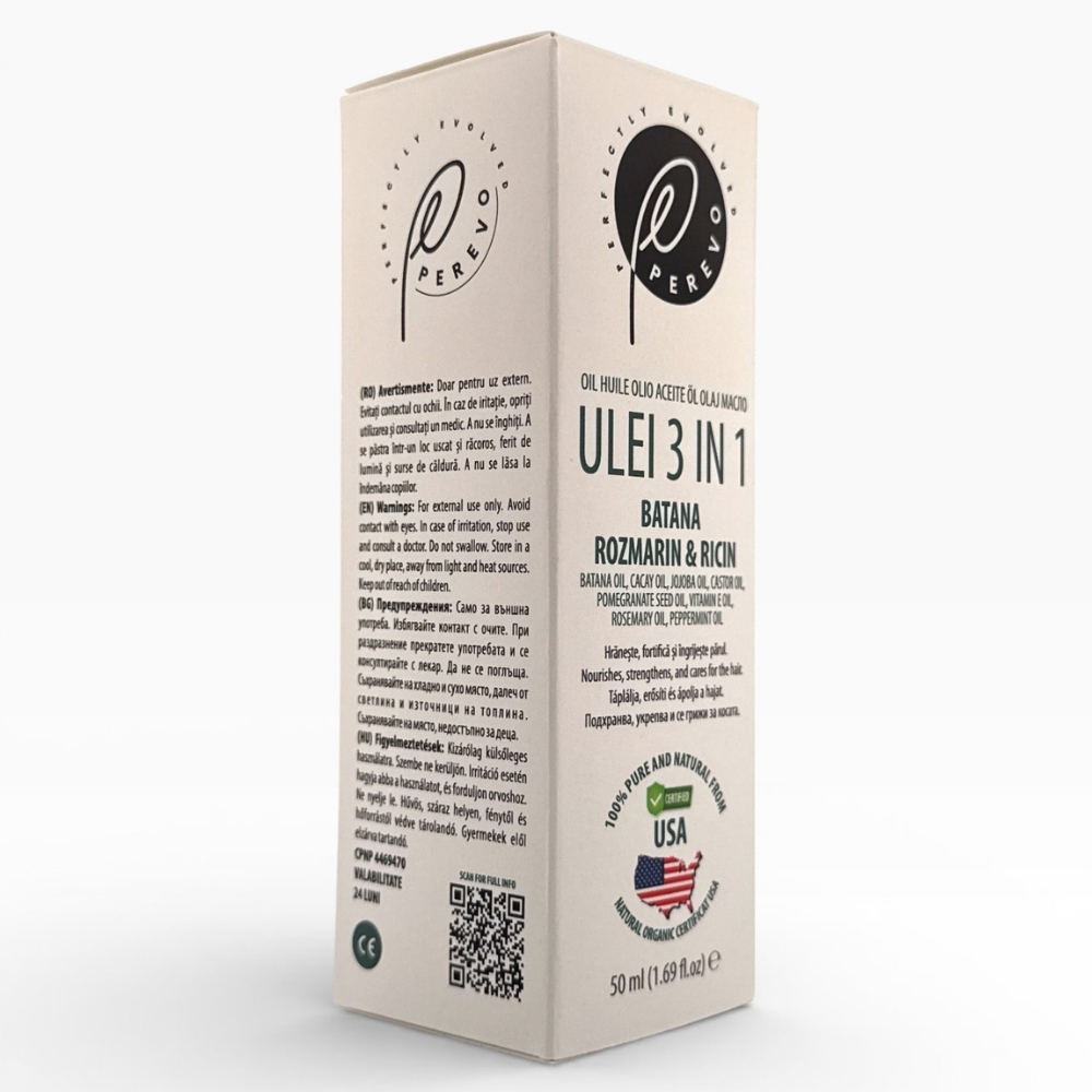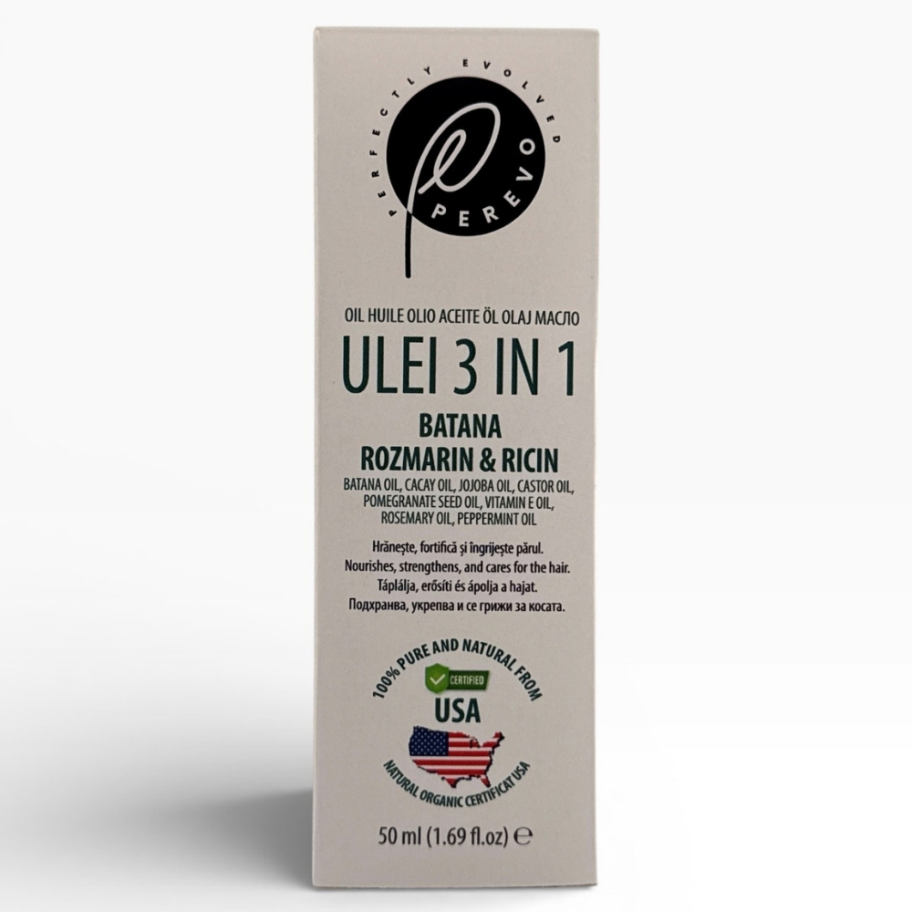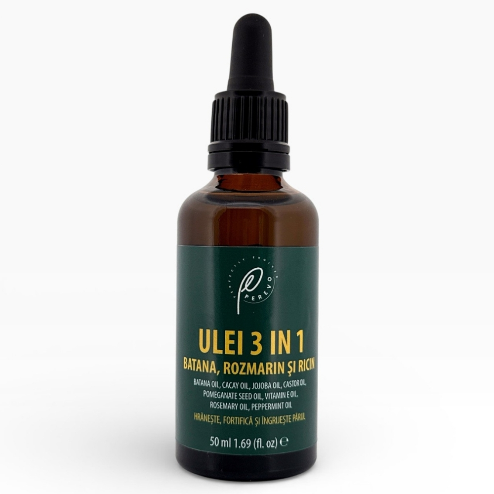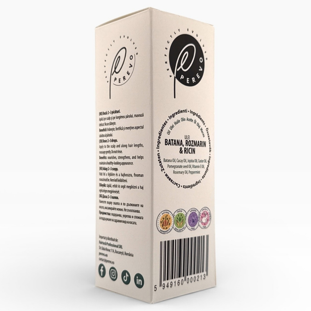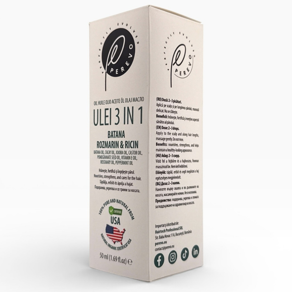 Ulei 3 in 1 cu batana, ricin si rozmarin pentru scalp si par, 50 ml, Perevo [5949160000213]