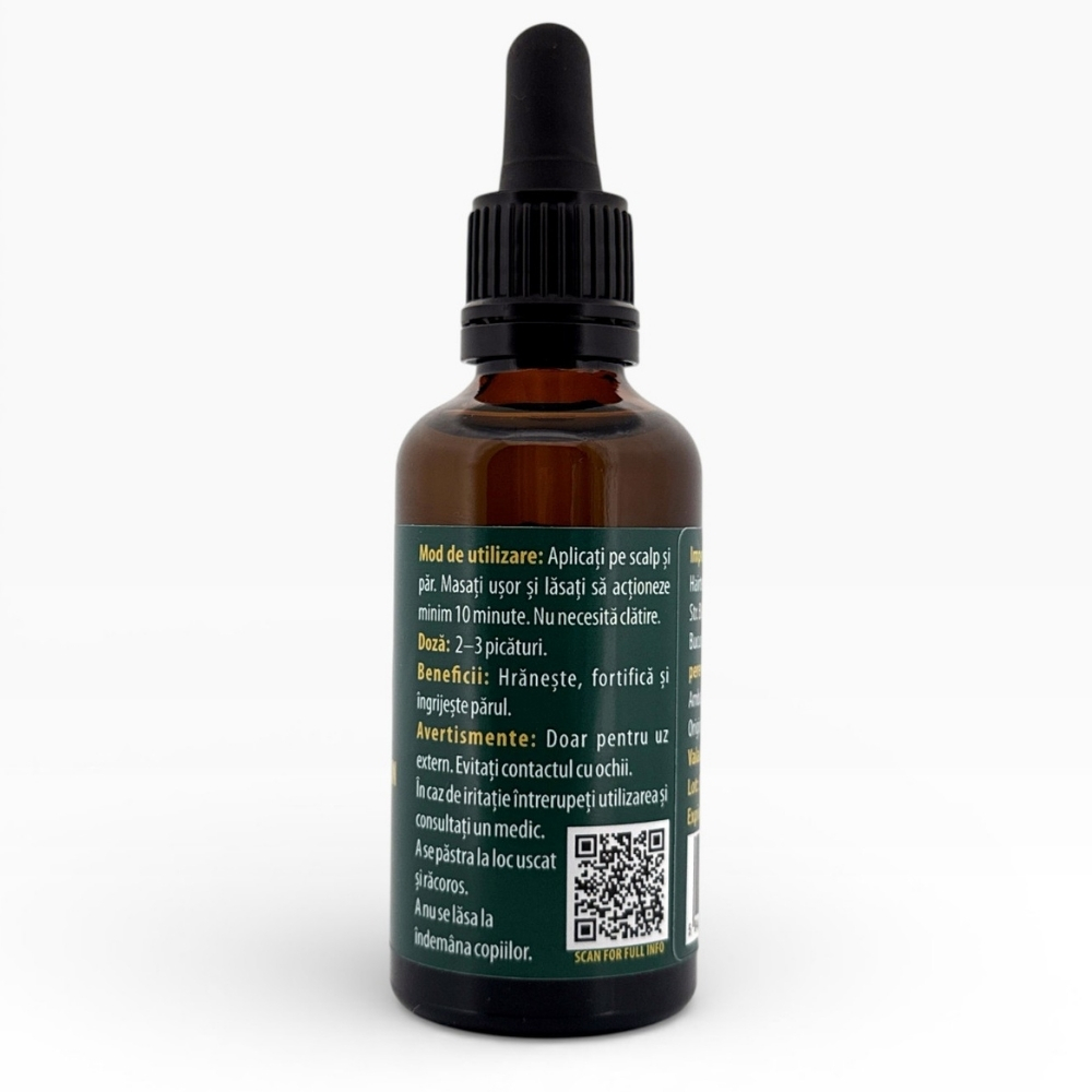 - formula completa cu 8 uleiuri naturale: Batana, Cacay, Jojoba, Ricin, Seminte de Rodie, Rozmarin, Menta si Vitamina E;