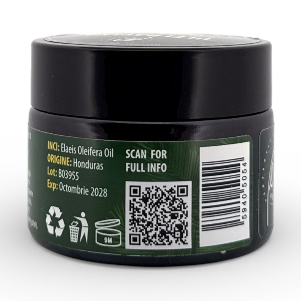 - ulei 100% pur, nerafinat, extras din nucile palmierului american Elaeis Oleifera (origine certificata Honduras);