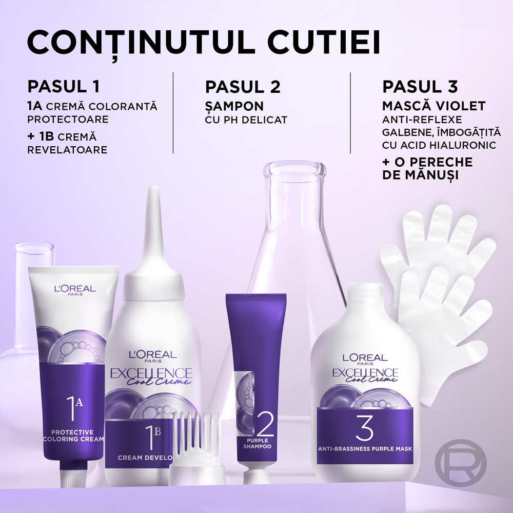 - include sampon violet cu pH delicat pentru curatare dupa vopsire;