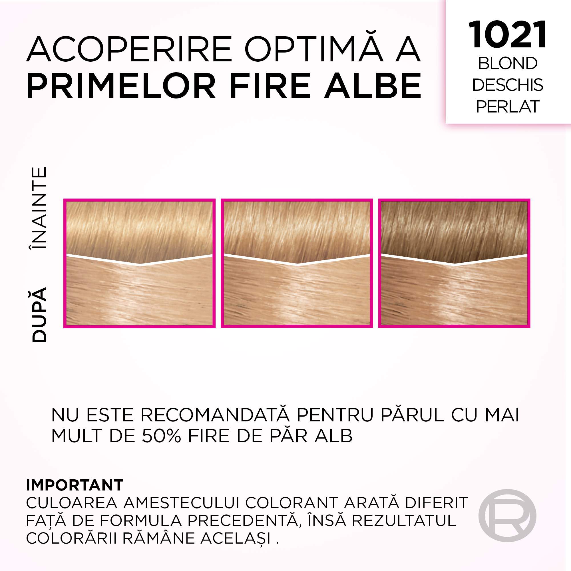 - acopera eficient firele albe, pentru o culoare uniforma si naturala;