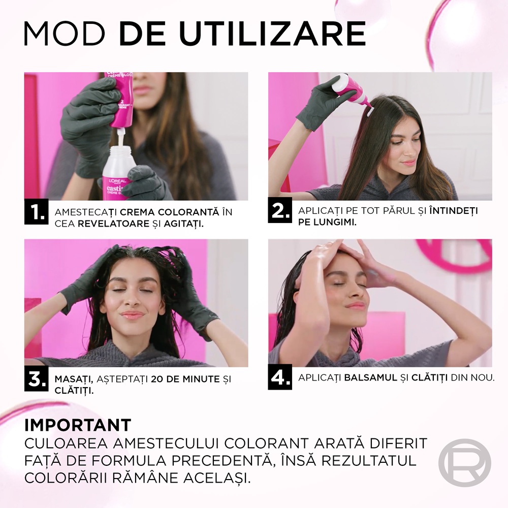 - contine crema coloranta fara amoniac pentru o colorare delicata;