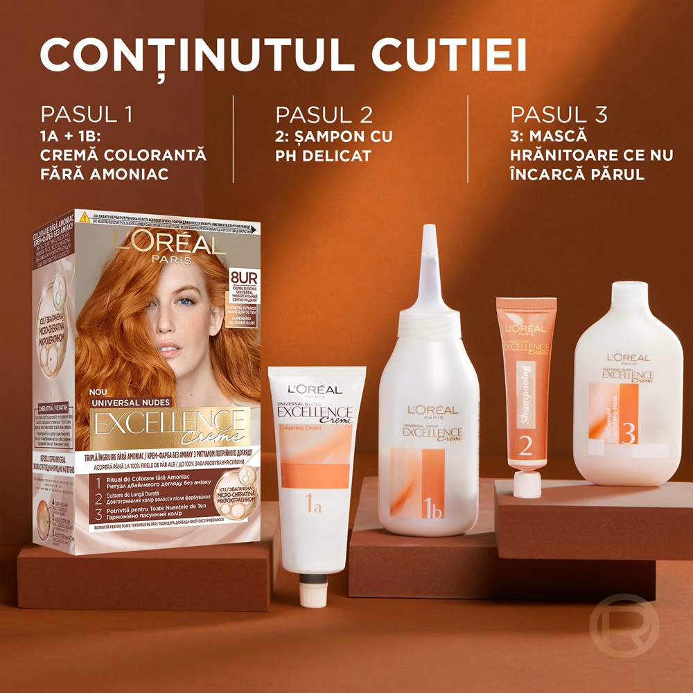 - contine crema revelatoare si crema coloranta pentru rezultate uniforme si profesionale;