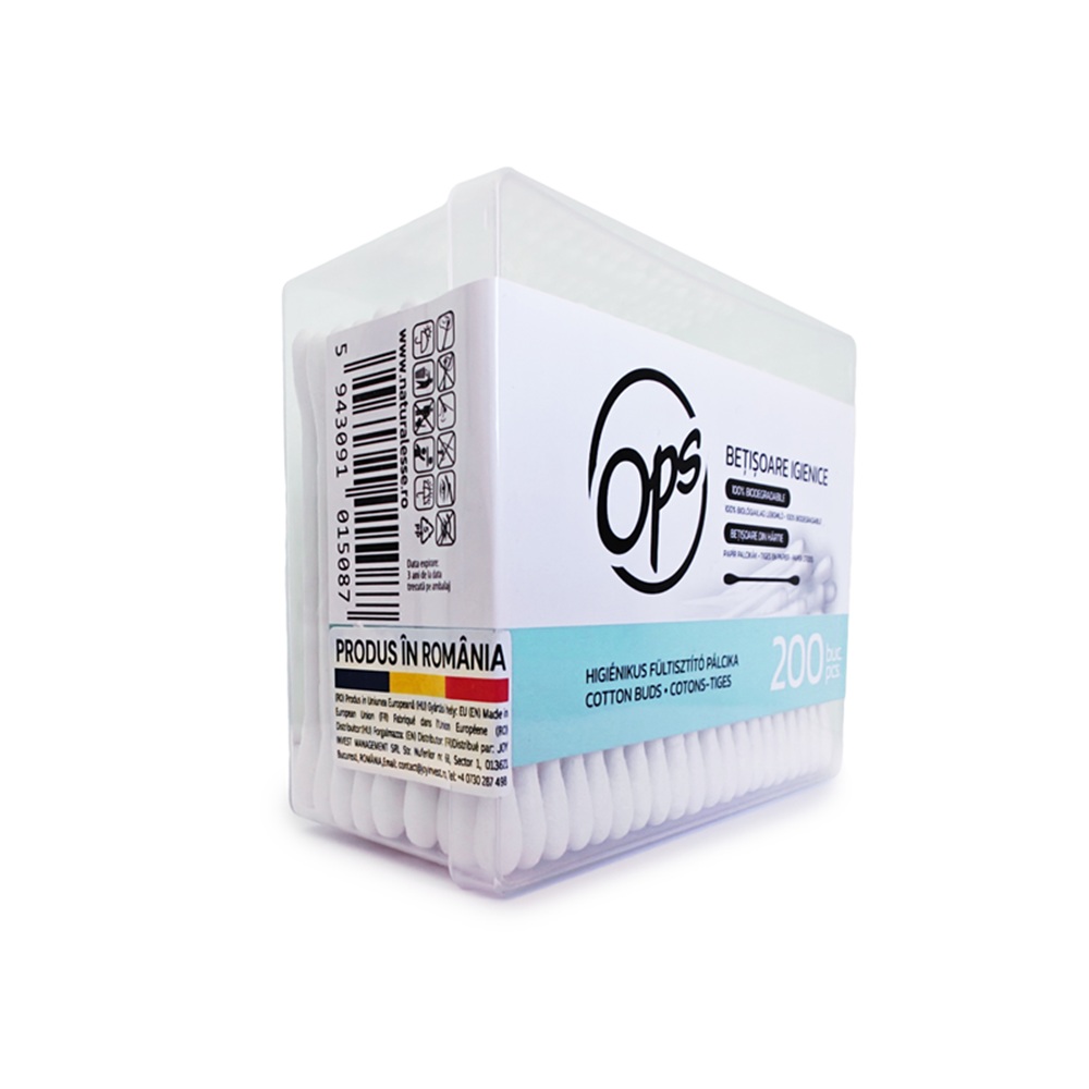 Bețișoare cosmetice din fibre de bumbac de calitate superioară, cu băț din hârtie pentru un mediu mai sigur și mai protejat.
