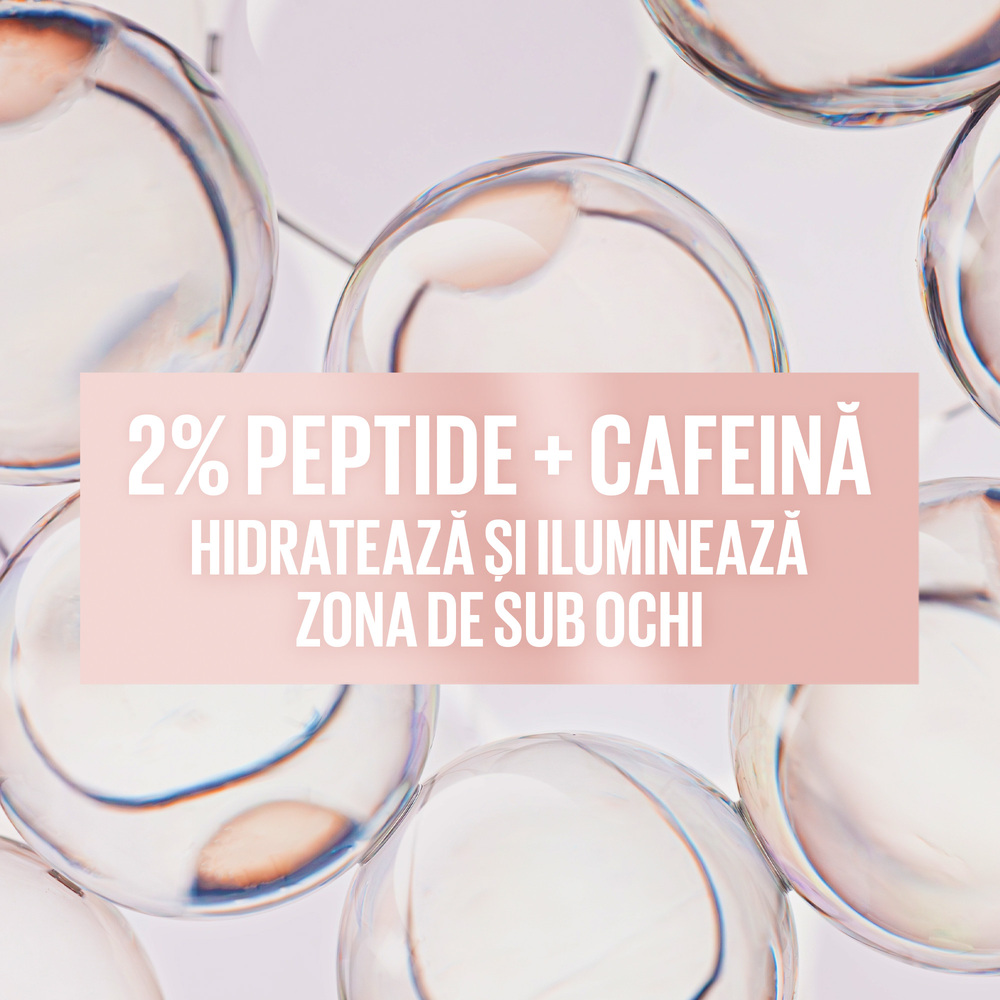Ingrediente active:Formula include 2% complex de peptide si cafeina, ingredientele esentiale care contribuie la un efect vizibil de netezire si iluminare in zona ochilor.