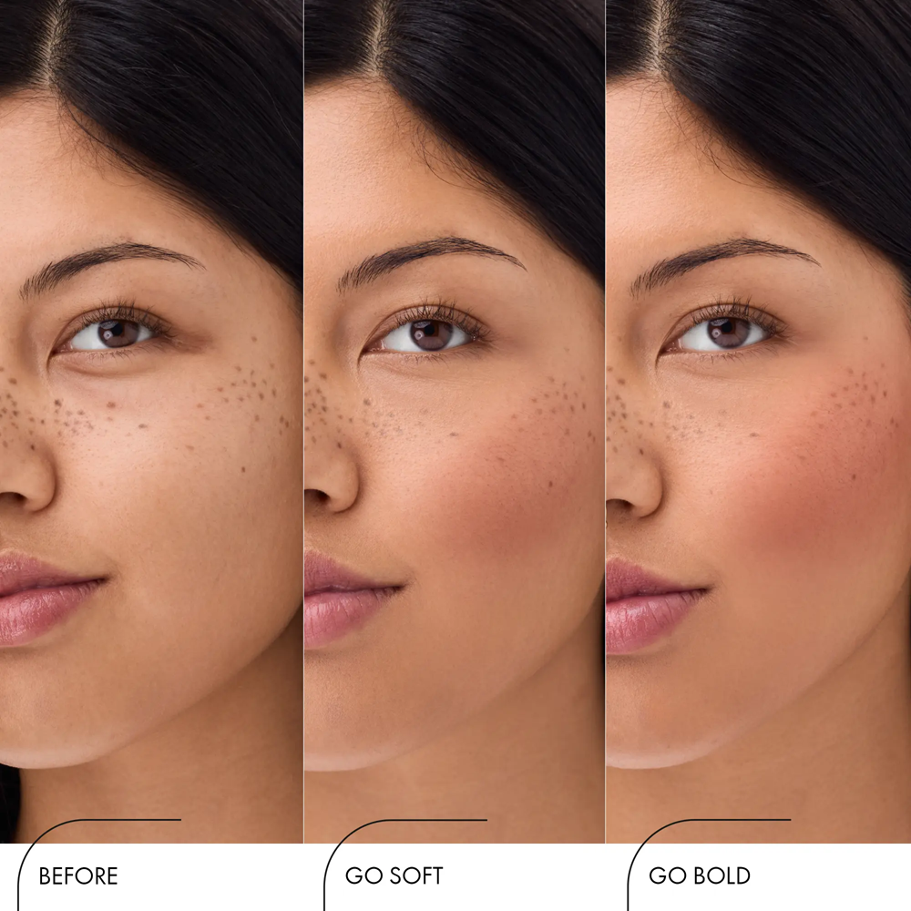 Folosește vârful degetelor sau o pensulă densă pentru a aplica delicat fardul pe obraji. Apoi îl puteți uniformiza cu ușurință pentru un finisaj delicat sau îl puteți reaplica pentru o culoare mai intensă. Textura cremă-pudră care nu usucă creează un rezultat instantaneu, indiferent dacă utilizați o singură glisare sau mai multe.