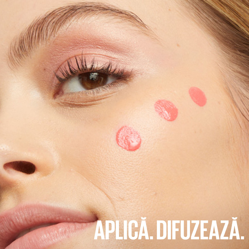 Foloseste aplicatorul pentru a aplica blush-ul direct pe fata. Blenduieste produsul si construieste intensitatea treptat, in functie de efectul dorit. Fiind un fard de obraz lichid, se aplica rapid si se integreaza perfect in machiajul tau de zi cu zi.