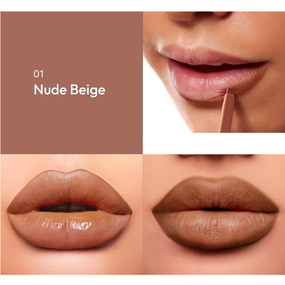 Contureaza buzele urmand linia naturala sau depasind-o usor pentru efect de marire.
