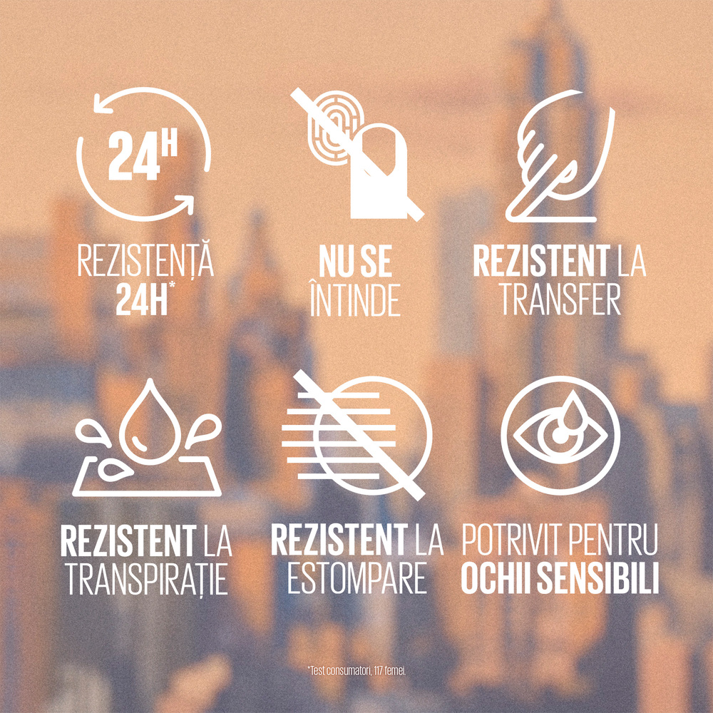 - creion de ochi smokey cu doua capete ce ofera definire precisa, difuzare usoara si o rezistenta impresionanta de pana la 24H;