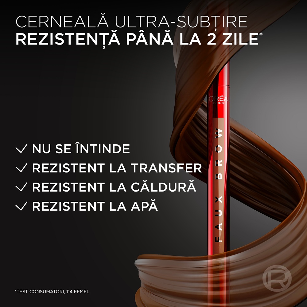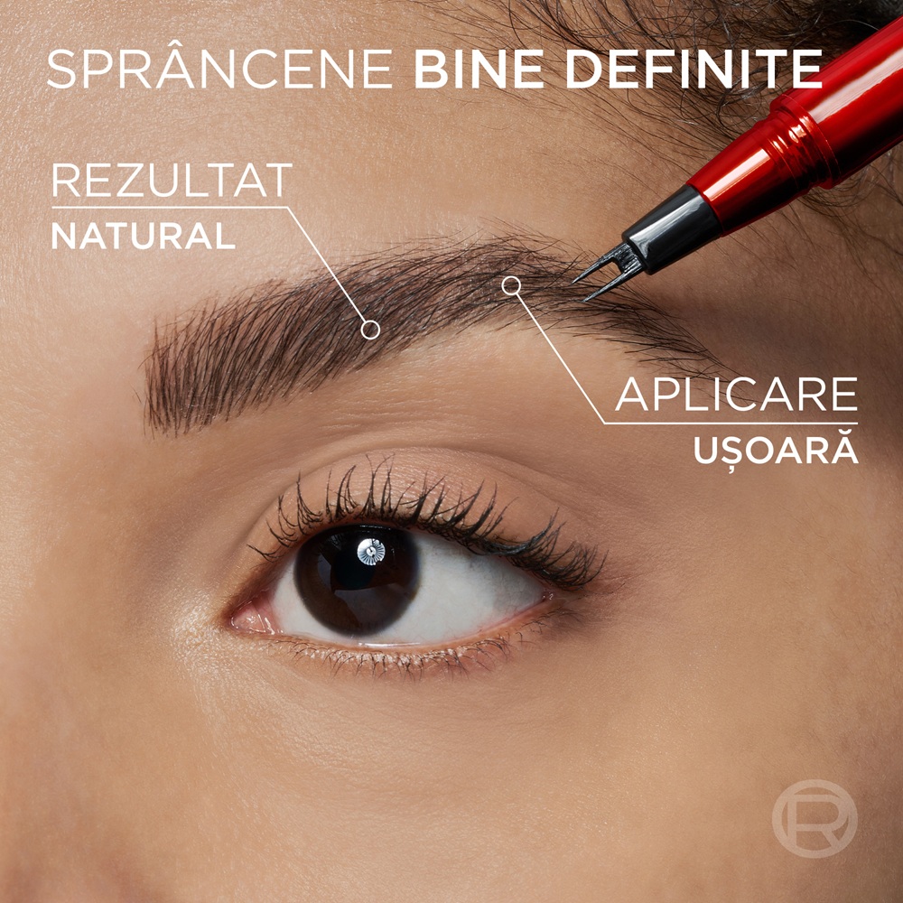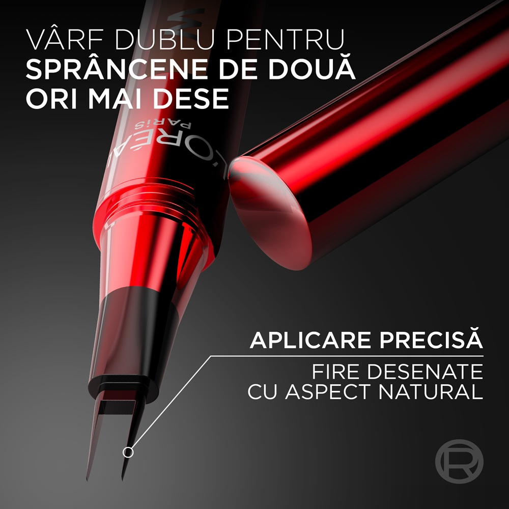 - aplicator precis cu varf dublu, pentru a defini perfect sprancenele.