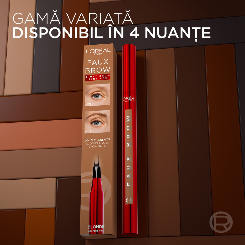 1. Ridicati si setati (optional): pentru un aspect sculptat, periati sprancenele ascendent folosind Loreal Paris Infaillible Brow Lamination (vandut separat).