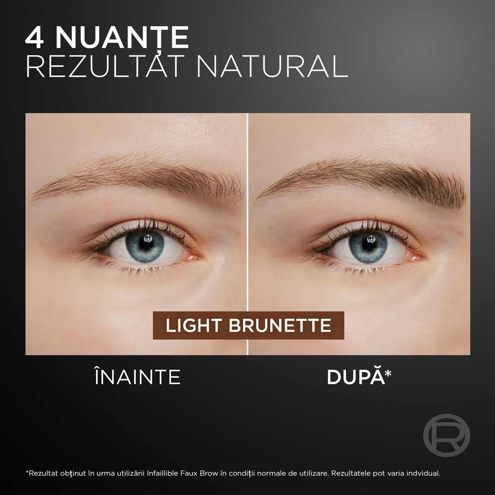 1. Ridicati si setati (optional): pentru un aspect sculptat, periati sprancenele ascendent folosind Loreal Paris Infaillible Brow Lamination (vandut separat).